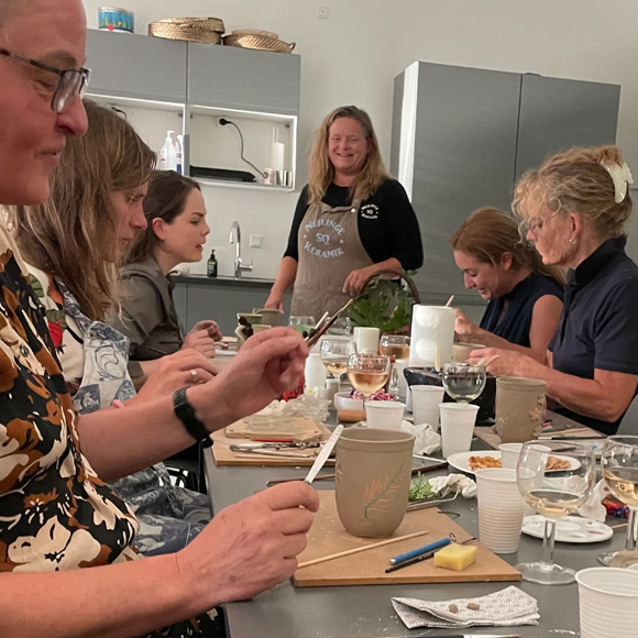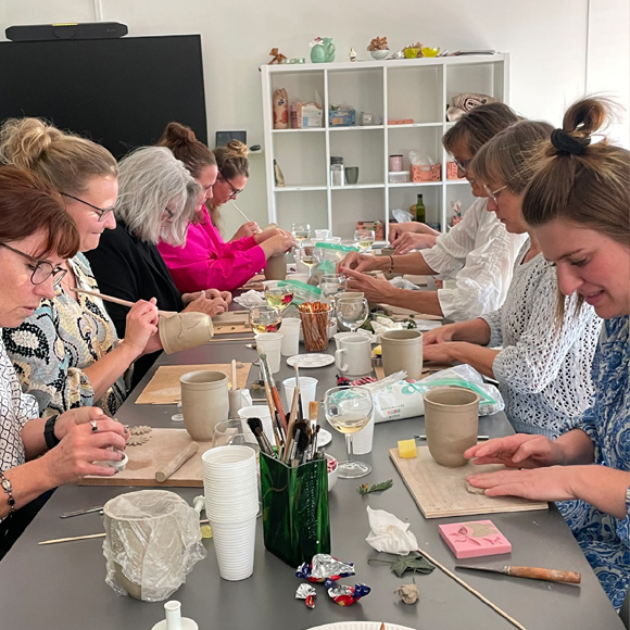 Efter eventet glaserer og brænder jeg jeres keramik. Jeg giver jer besked, når keramikken er klar til afhentning efter ca. 4 uger.